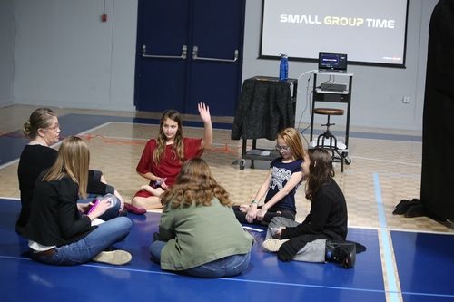Organized large-group games bring the students together to compete or sometimes act down-right funny! We also break up into small groups twice a month to go a little deeper and more personal. We end with open gym so students have time to talk with their friends while waiting for their parents to pick them up.